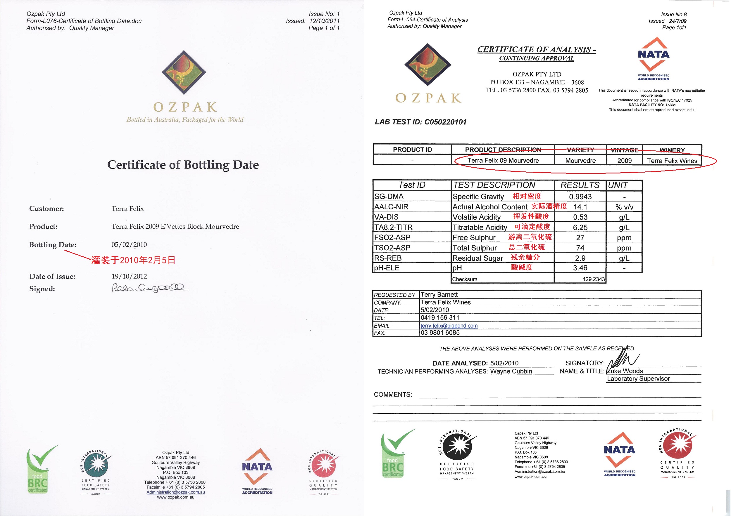 灌装证明 成分分析