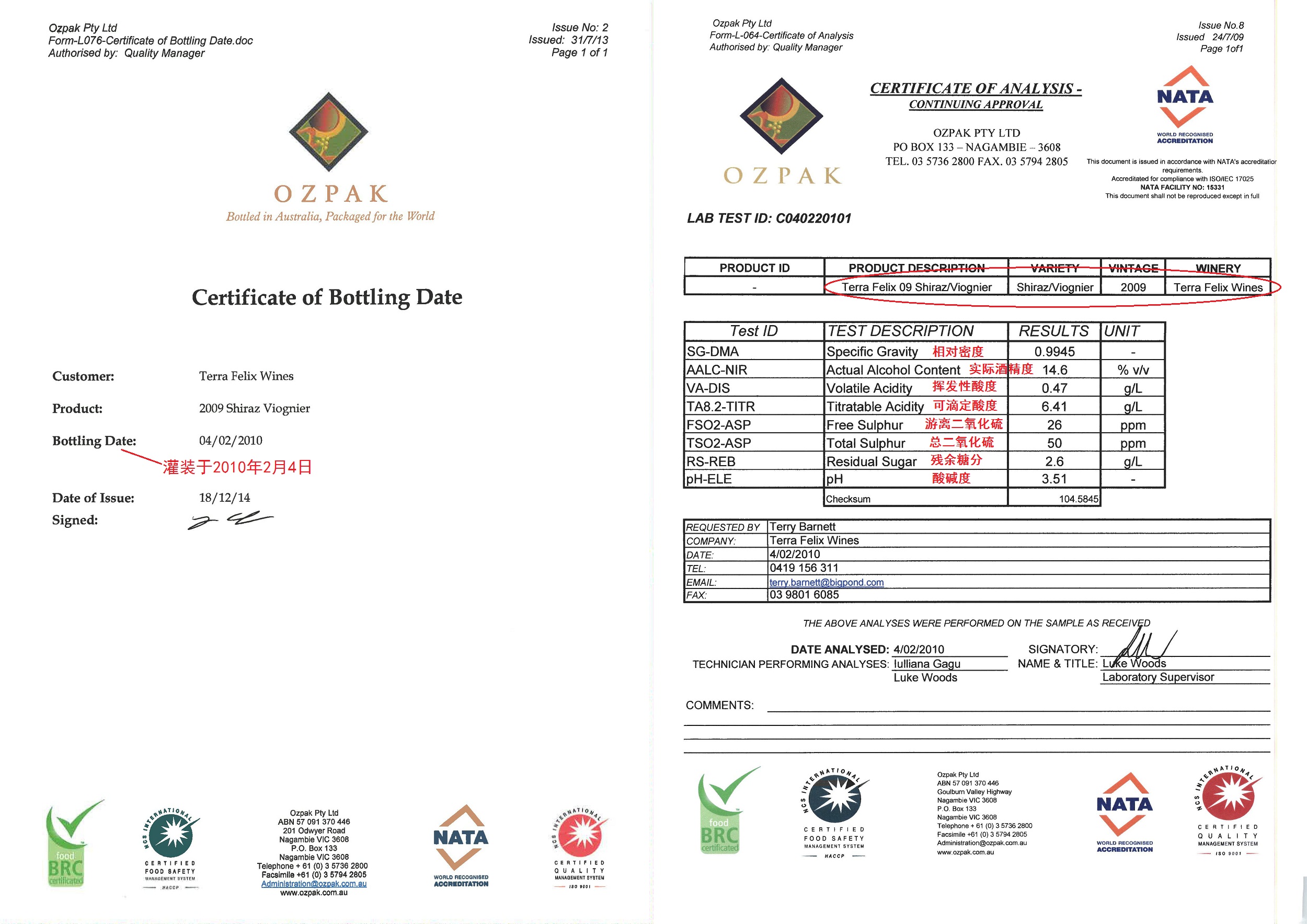 灌装证明 成分分析